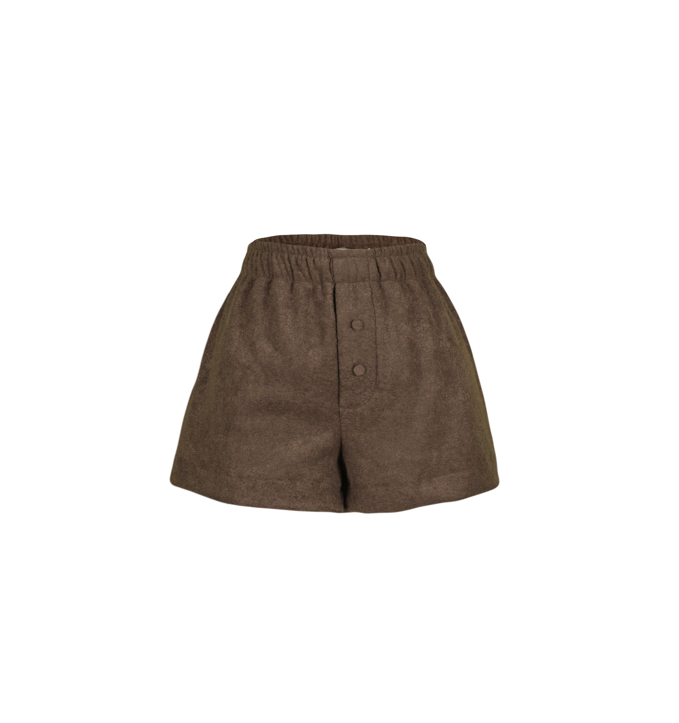 Botões fake aplicados na parte frontal e bolsos traseiros.